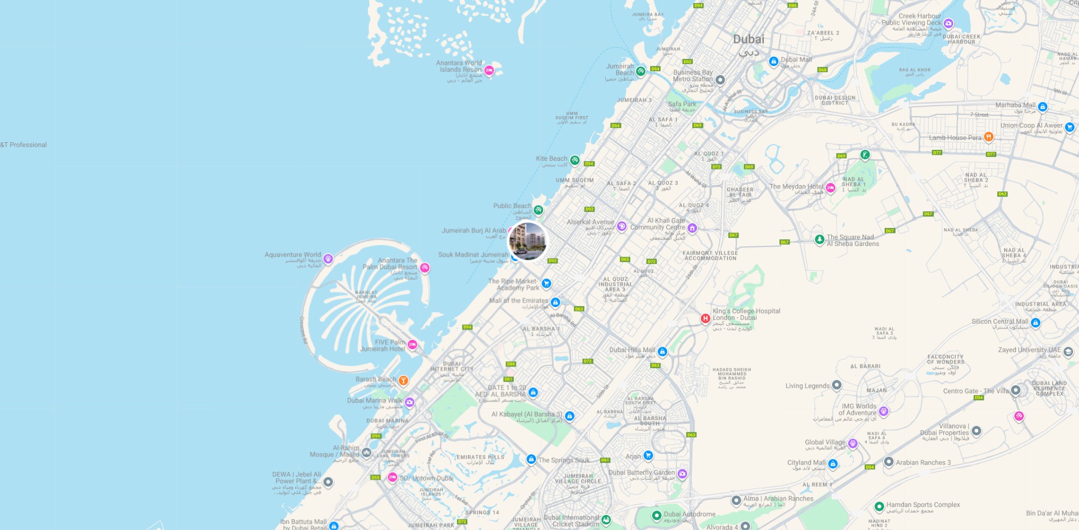Situated in Umm Suqeim / Jumeirah, Jadeel benefits from a serene beachfront ambiance, pedestrian-friendly streets, and landscaped greenery. Connected via Sheikh Zayed Road and Jumeirah Road, it provides quick access to Downtown Dubai, Dubai Marina, schools, hospitals, and retail hubs.