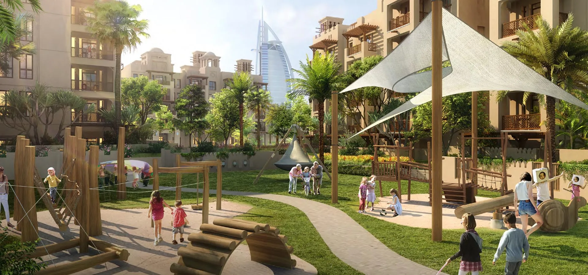 Enjoy shaded walkways, jogging and cycling paths, parks, and playgrounds, with direct air-conditioned access to Madinat Jumeirah Resort and Souk for convenience and connectivity.